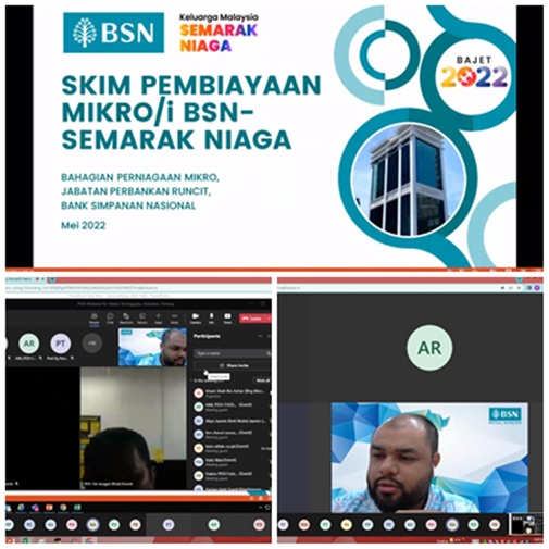• Webinar yang dianjurkan oleh pihak BSN melibatkan semua PEDi di seluruh negeri Pahang, Terengganu dan Kelantan. PEDi memaikan peranan untuk mempromosikan skim pembiayaan Mikro/I BSN ini.